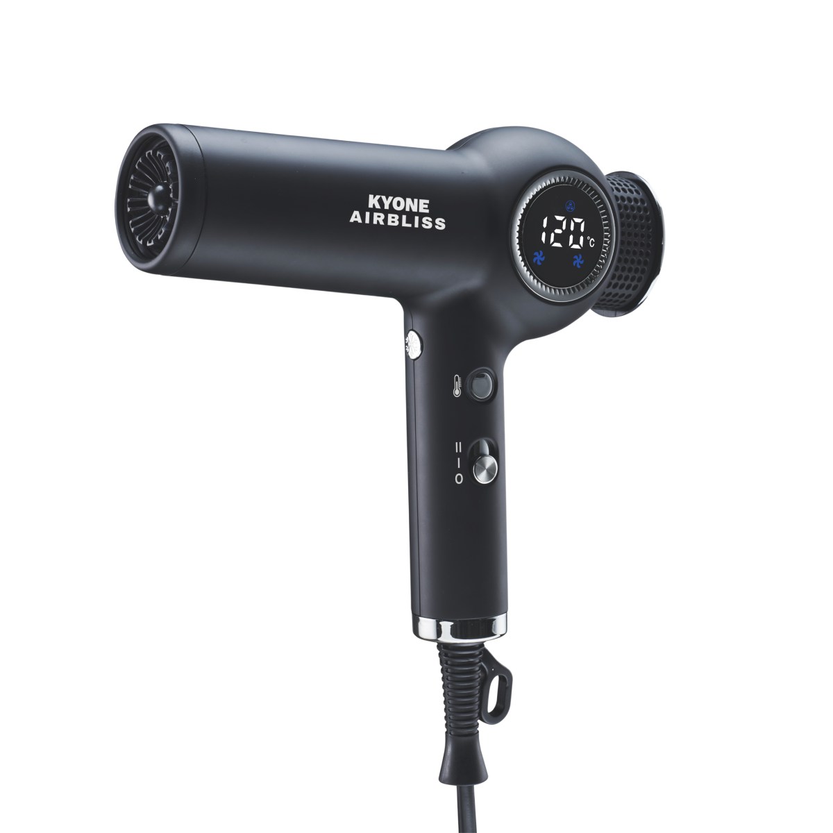 Airbliss är en verklig revolution inom hårtorkar och den mest kraftfulla och tystaste Kyone-hårtorken. Med en ultralätt vikt på endast 340 gram och viskningstyst drift på endast 80 dB utan irriterande visslande, är det den ultimata måste-ha och en sann banbrytare!